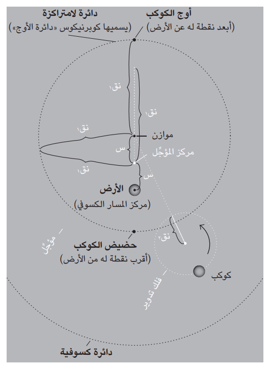 ذلك التوسيع لنطاق مبدأ الميكانيكا السماوية من أجل إفساح حيز لمركز فلك الدوران للتحرك بانتظام حول نقطة ما غير مركز مؤجلها شكل في رأي كوبرنيكوس فضيحة مدوية لنظام بطليموس، وهي تلك الفضيحة التي تمكن كوبرنيكوس بفضل نظامه الخاص من القضاء عليها فقط على حساب الظواهر البادية.