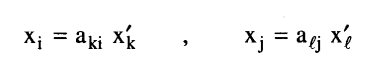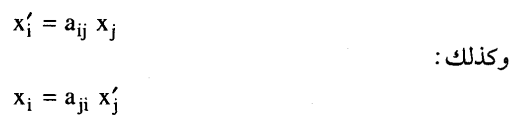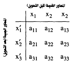 حيث alj ، aki هي جيوب تمام الاتجاهات الخاصة بالمحاور بعد التحويل x' بالنسبة للمحاور قبل التحويل x.