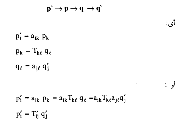 وعلى هذا تتحول المعادلة (7-2) من مجموعة المحاور xi إلى مجموعة جديدة x'i: