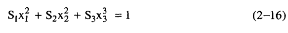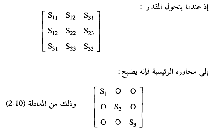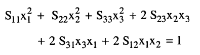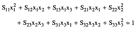 وعلى هذا يكون السطح الممثل بالمعادلة (14-2) خاصا بالمجسم التربيعي للكمية الممتدة Sij. ومن الخواص المهمة لمثل هذا المجسم امتلاكه لمحاور رئيسية ثلاثة متعامدة فيما بينها. وإذا نسب المجسم إلى تلك المحاور فإن معادلته تصبح: