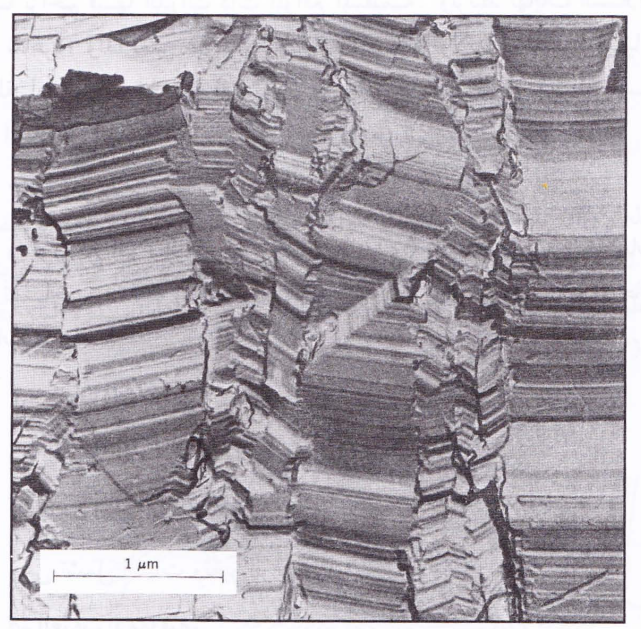 بلورات من مادة البولي إثيلين الخطية وتوصف بأنها ذات سلاسل ممتدة.