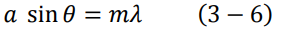 حيث a المسافات الفاصلة بين ذرات بلورة النيكل، m عدد صحيح، وهو لتحديد رتبة خطوط التداخل لو استخدمنا الان المعادلة (6-3) لا يجاد الطول الموجي λ. بمعلومية a والزاوية θ، سنجد انها بالضبط تعطي نفس الناتج لو اننا استخدمنا معادلة دي بروي (المعادلة (3–3)). يوضح الشكل (4–3) العلاقة بين شدة الإشعاع I وفرق الجهد V، حيث فرق الجهد هو المسؤول عن طاقة حركة الالكترونات أو كمية دفعها تكون شدة الإشعاع أعلى ما يمكن عند 54 = V أي عندما تكون الزاوية θ تساوي 50º.