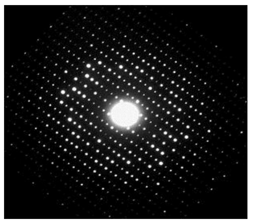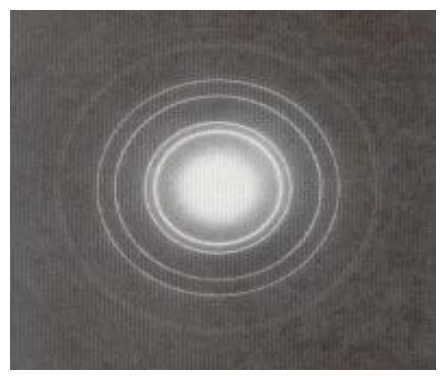 إن ظاهرة تداخل الالكترونات قد تظهر على شكلين إما على شكل حلقات كما هو في الشكل (5–3) أو على شكل نقاط مضيئة كما هو موضح بالشكل (6-3) السبب في ذلك يعتمد على تركيبة المواد التي تسقط عليها الالكترونات، فإذا ظهر شكل حلقات تكون تركيبة البلورات الداخلية اسطوانية الشكل، بحيث تحتوي على جميع الاتجاهات الممكنة، وإذا ظهرت نقاط مضيئة، فان تركيبة المادة تكون عادية.