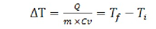 ونظرا لافتراض أن الكتلة هي 1 جم فإنه يمكن الحصول على درجة الحرارة النهائية بالعلاقة التالية :