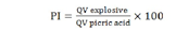 حيث إن Q كمية الحرارة وv حجم الغازات الناتجة وقد تم اختيار متفجر حمض البيكريك Picricacid كمقياس لمعامل قوة المتفجرات وذلك لجعل الحسابات أكثر سهلة كما في المعادلة السابقة حين إن قيمة معامل القوة لديه =100 .