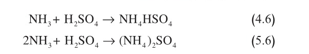 تتفاعل الأمونيا مع حمض الكبريت لتكوين كبريتات هدروجين الأمونيوم أو كبريتات الأمونيوم (التفاعلان 4.6 و 5.6) على شكل جسيمات تقع أقطارها ما بين 0.1 و 1 مكرون تقريباً. ونظراً إلى أن كمية حمض الكبريت تكون زائدة عادة، يكون المركب الأول هو المهيمن في معظم الحالات: