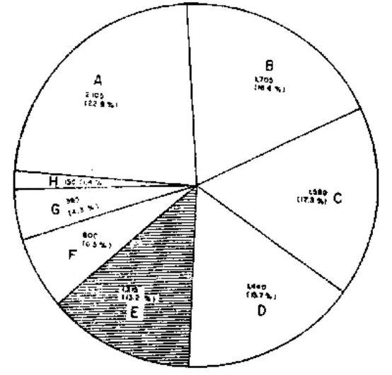 شكل يبين الانتاج العالمي من الزيوت النباتية الصالحة للأكل حيث يمثل الزيتون 13% في عام 1952.