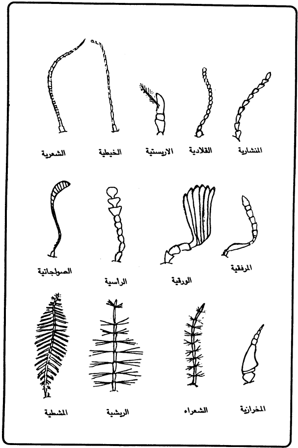 وتختلف قرون الاستشعار من حشرة لأخرى منها: