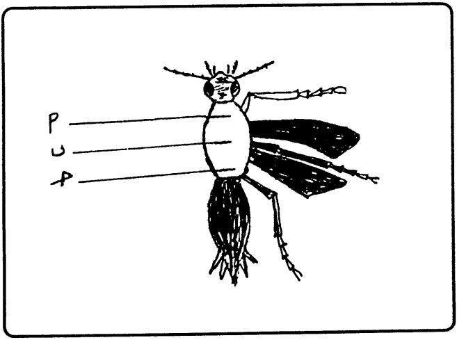يوضح الرسم الأجزاء الثلاثة المختلفة التي ينقسم إليها جسم الحشرة