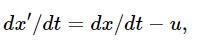Suppose we are riding in a car that is going at a speed u, and light from the rear is going past the car with speed c. Differentiating the first equation in (15.2) gives