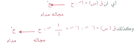 انعكاس لبيان الاقتران ق(س)=أس في محور الصادات ما دام أ عدداً موجباً لا يساوي الواحد الصحيح كماا ورد بالتعريف ومن الملاحظ أيضاً ان مجال الاقتران الأسي هو الاعداد الحقيقية ح (الموجبة والصفر والسالبة) ولكن مداه فهي الاعداد الحقيقية الموجبة ح+ فقط , كون بيانه فوق محور السينات فقط ولا يقطعه أبداً.