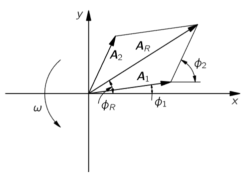 This solves the problem that we wanted to solve, because it represents the result as a complex number of magnitude AR and phase ϕR.