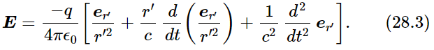 An interesting question is, what is this radiation resistance due to? Let us take a simple example: let us say that currents are driven up and down in an antenna. We find that we have to put work in, if the antenna is to radiate energy. If we take a charged body and accelerate it up and down it radiates energy; if it were not charged it would not radiate energy. It is one thing to calculate from the conservation of energy that energy is lost, but another thing to answer the question, against what force are we doing the work? That is an interesting and very difficult question which has never been completely and satisfactorily answered for electrons, although it has been for antennas. What happens is this: in an antenna, the fields produced by the moving charges in one part of the antenna react on the moving charges in another part of the antenna. We can calculate these forces and find out how much work they do, and so find the right rule for the radiation resistance. When we say “We can calculate—” that is not quite right—we cannot, because we have not yet studied the laws of electricity at short distances; only at large distances do we know what the electric field is. We saw the formula (28.3), but at present it is too complicated for us to calculate the fields inside the wave zone. Of course, since conservation of energy is valid, we can calculate the result all right without knowing the fields at short distances. (As a matter of fact, by using this argument backwards it turns out that one can find the formula for the forces at short distances only by knowing the field at very large distances, by using the laws of conservation of energy, but we shall not go into that here.)