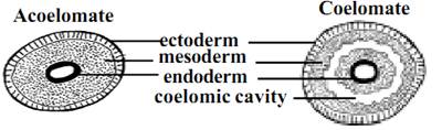 The Triploblastic animals are further divided into three groups based on the presence or absence of an embryonic body cavity called coelom.