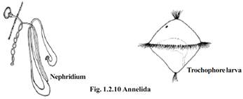 These are worm like animals. The body segments are rings externally. Internally the segments are separated by septa. Externally the body is protected by a cuticle. Excretion and osmoregulation are achieved by ciliated tubules called nephridia. There is a central nervous system. The brain is formed of ganglia in the head region. The nerve cord is ventral in position. For the first time head formation or cephalization happens. These are bisexual and hermophroditic. The larva is called the trochophore.