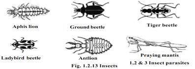 Class Insecta:-It comprises the common insects. The body is divided into head thorax and abdomen .In several insects, the adults have two pairs of wings on the thorax. Respiration happens through the tracheal system.
