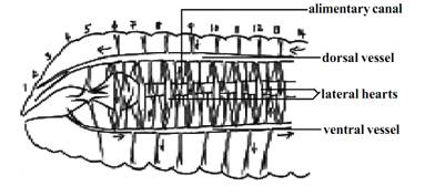 Fig. 1.3.5. Earthworm - Circulatory system-Lateral view