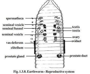 Both male and female reproductive organs are present in the same worm. Hence the earthworms are known as hermaphrodites. Since the sperms develop earlier than production of ova, self-fertilization is avoided. It is known as protandry.