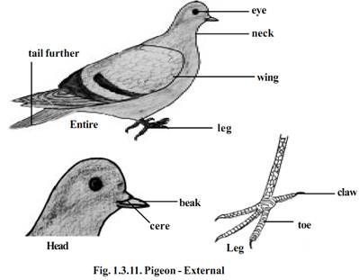 The Pigeons are flying birds (carinate). They are known both as wild and domesticated forms. The Pigeons are seen both in tropical and temperate zones. About 10 species of Pigeons are found in India. The pigeons fly in flocks and roost together. The domestic pigeons have many varieties, namely panter, fantail and tumblers. They differ in size, colorations and feather arrangement. All of them are, however, descendants of the rock pigeon-columba livia