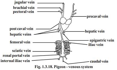 The deoxygenated blood from various regions of the body is collected by several veins. Finally these veins take the blood to the right auricle through the two precaval and a single postcaval veins.