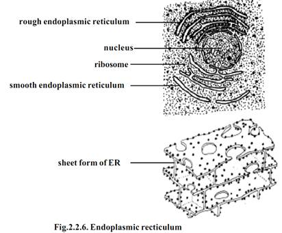 The ER is the site of specific enzyme controlled biochemical reactions. Its outer surface carries numerous ribosomes. The presence of ribosomes gives a granular appearance. In this condition ER is described as rough endoplasmic reticulum (RER). RER is the site of synthesis of proteins. Ribosomes are absent on smooth endoplasmic reticulum (SER). SER is concerned with lipid metabolism.