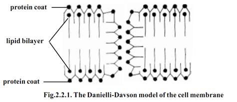 According to a model proposed by Danielli and Davson in 1935, the lipid bilayer of the membrane was coated on either side with protein.