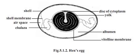 In some animals the growth and differentiation of the embryo is much more elaborate. The growth period is sufficiently long. Hence for supporting the embryo in development the eggs contain large quantity of yolk. Such eggs are termed as Megalecithal or Macrolecithal eggs. The eggs of reptiles and birds are considered as macrolecithal. Further these eggs are covered by a calcareous shell. It is a protective structure for laying the eggs on lands. Such eggs are called cleidoic eggs or land eggs
