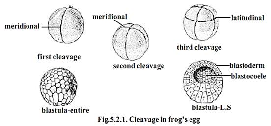 The first cleavage of frog’s egg was observed by Swammerdam in 1738. The entire process of cleavage in frog’s egg was studied by Prevost and Dumas in 1824. With the development of microscopes cleavages and further stages were observed in the eggs of sea urchin, star fishes, amphioxus and hen’s eggs.