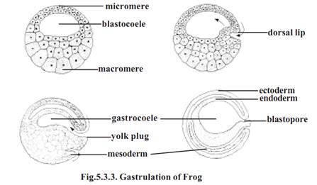 The blastopore gradually assumes a crescentic shape. Finally it becomes circular. The region dorsal to the blastoporal opening is called the ‘dorsal lip'. The lower edge maybe called ventral lip