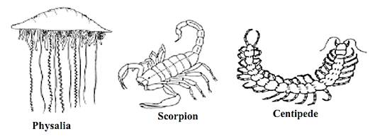 Fig. 7. Fangs of snakes and marks left by the bite of poisonous and non-poisonous snakes