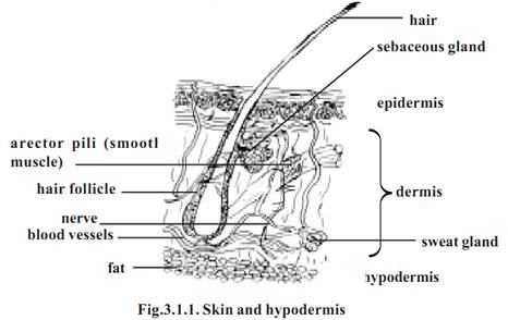 The skin is composed of two major tissues, namely dermis and epidermis. The dermis is mostly formed of connective tissue having fibroblasts, adipose cells and macrophages. It provides the structural strength to the skin. The dermis accommodates nerve endings, hair follicles, smooth muscles and glands.