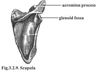 The pectoral or shoulder girdle consists of two pairs of bones. Each pair has a scapula or shoulder blade and a clavicle or collarbone. The scapula is a flat, triangular bone. A glenoid fossa is located in the superior lateral region of the scapula. It articulates with the head of the humerus. The clavicle is a long bone. It has a slight S-shaped curve. It can be easily seen and felt. The clavicle holds the upper limb away from the body.