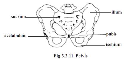 Each coxa is formed by the fusion of three bones, namely ilium, ischium and pubis. A fossa called the acetabulum is located on the lateral surface of each coxa. The acetabulum is meant for the articulation of the lower limbs.