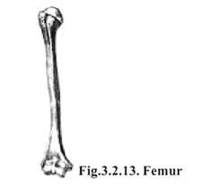 The upper region of the leg is the thigh. It contains a single longest bone called the femur. It has a prominent rounded head for articulating with the acetabulum of the pelvic girdle. The distal end of the femur has two condyles for articulation with the tibia.