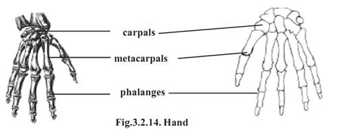 Pectoral girdle - The hands are attached to the pectoral girdle. Both of them are attached loosely by muscles to the body. This arrangement facilitates freedom of movement. Hence it is possible to place the hand in a wide range of positions.