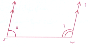 حيث 5+6=180○ كونهما بوضع تحالف فهما متكاملتان والمستقيمان أب , جـ د متوازيان .