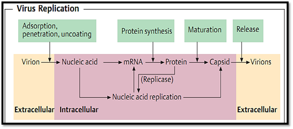 viruses replicate only in living host cells. The detailed steps involved in their replication are shown below (Fig. 1). The reactions of the infected cell (cytopathology, tumor transformation, etc.).
