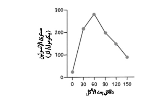 استجابة الإنسولين الطبيعية للأكل. بعد الأكل تماما، تكون الزيادة في إنسولين الدم سريعة على نحوٍ مذهل قبل أن تهبط مرة أخرى.