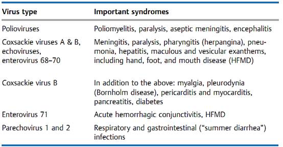 Table 1 Enteroviruses and Parechoviruses: Clinical Syndromes