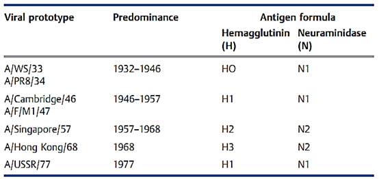 Table 1 Classification and Antigen Structure of Influenza A Viruses