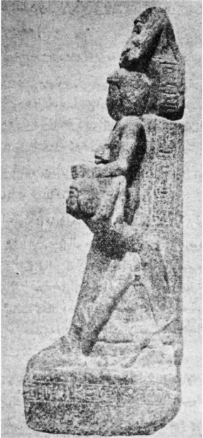 أما التمثال الثاني فقد صنع في حجر الشيث، ويبلغ ارتفاعه حوالي 92 سنتيمترًا، وقد مثل ماشيًا وممسكًا بيديه صورة تمثال صغير للإله «آمون» موضوع على قاعدة. ويلبس الفرعون التاج المزدوج.