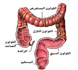 - الاعور والقولون الصاعد والنصف الايمن من القولون المسؤول عن الامتصاص