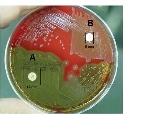 يثبط المضاد الحيوي باسيتراسين Bacitracin بناء جدار الخلية البكتيرية. اذا يستعمل قرص (TaxoA) الحاوي (0,04) وحدة من المضاد باسيتراسين، اذ يوضع القرص على سطح الطبق الزرعي ويتم انتشار المضاد في الوسط الزرعي و بعد مدة الحضن تفحص الاطباق المزروعة والتحري عن مناطق التثبيط inhibition zones حول قرص مضاد الباسيتراسين.