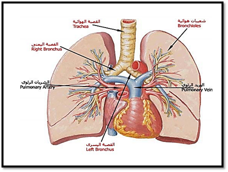 يوجد في الانسان رئتان رئيسيتان يمنى ويسرى تقعان في التجويف الصدري داخل القفص الصدري الذي يحميهما ويحفظها من أي صدمات في تضر بهما ويقع بينهما القلب .