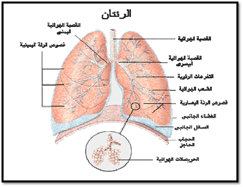 ويحيط رئة غشاء رقيق ذو طبقتان يسمى بغشاء (البلورا) ويوجد بين هذين الطبقتين سائل يسهل من انزلاق الرئتان على غشاء البلورا اثناء عملية التنفس ويغذي الرئتين بشرايين تمدها بالدم قادمة اليها من القلب.