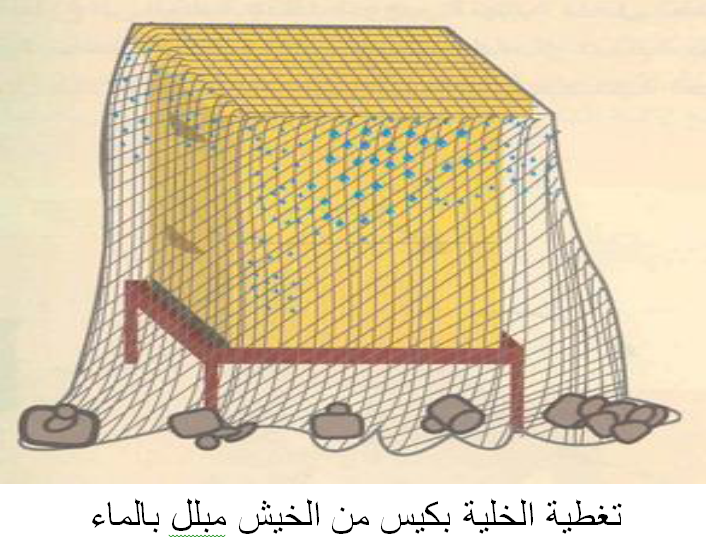 * وعند الرش تغطى كل الخلية بكيس خيش مبلل بالماء ليمنع تعرض جسم الخلية الخارجية لرذاذ المبيد المتطاير.