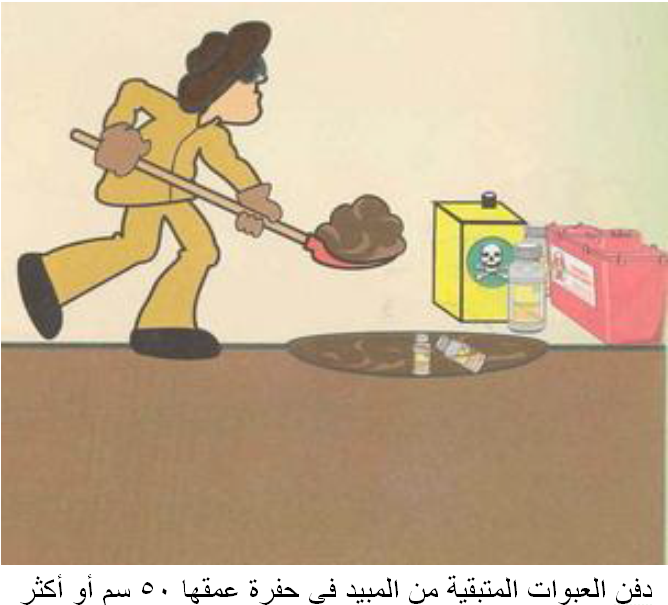 دفن العبوات المتبقية من المبيد في حفرة عمقها 50 سم أو أكثر
