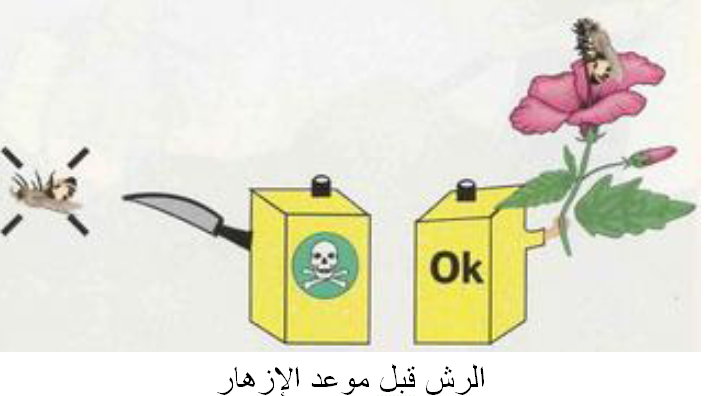 * الرش قبل موعد الإزهار أو بعد عقد الثمار (الشكل التالي):