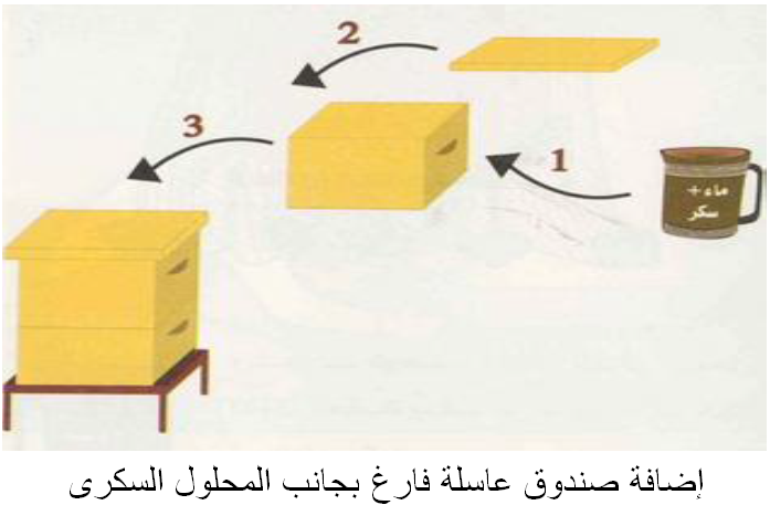 * ويتوجب توفير الغذاء الكافي للنحل داخل الخلية وذلك عن طريق التغذية بمحلول سكري.