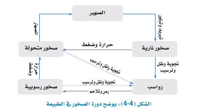 يعد مفهوم دورة الصخور أحد الأساليب لفهم العلاقات المتبادلة بين أنواعها الرئيسية والعمليات المسؤولة عن تحويل نوع منها إلى آخر، وأول أنواع الصخور هي الصخور النارية التي تتكون عندما تبرد الماجما ثم تتبلور، وقد تحدث تحت سطح الأرض عملية التبلور هذه وينتج عنه الصخور النارية المتداخلة Intrusive lgneous Rocks، أو بعد خروج الماجما إلى السطح، على شكل ثوران بركاني، وينتج عنه الصخور البركانية المتخرجة Extrusive Volcanic Rocks. وعندما تصبح الصخور النارية مكشوفة على سطح الأرض تتعرض للتجوية والتعرية التي تعمل مع تعاقب الأيام على تفتيت هذه الصخور وتحليلها، وتنقل نواتج التجوية بواسطة عوامل التعرية المختلفة مثل المياه الجارية، والجليد الزاحف، والرياح والأمواج ثم ترسب في المحيطات على شكل طبقات، ومن ثم تصبح صخوراً متماسكة بفعل ضغط ووزن الرواسب فوق هذه الطبقات أو بفعل ترسب المواد اللاحمة في المسام بين الرواسب، ويعرف هذا النوع من الصخور بالصخور الرسوبية Sedimentary Rocks. وكلما ازداد دفن هذه الصخور بطبقات أخرى من الرواسب، تتصلب هي الأخرى وتتحجر وتصبح صخور رسوبية أشد صلابة. وبفعل هذه التراكمات من الصخور يزداد الضغط والحرارة على الصخور السفلية. وإذا وصل الضغط والحرارة إلى درجات معينة، وعادة ما يكون هذا في الأعماق الكبيرة تحت السطح، فإن الصخور الرسوبية هذه تعانى من حالة عدم الاتزان وتتعرض حبيباتها لإعادة التبلور وهي في حالتها الصلبة وينتج عن ذلك صخور جديدة هي الصخور المتحولة Metamorphic Rocks. وعندما يزداد الضغط والحرارة على الصخور المتحولة، فإنها تتحول إلى صهير مرة أخرى ليعود ويتبلور هذا الصهير مرة ثانية على شكل صخور نارية، وبذلك تكتمل دورة الصخور وتنتهي من حيث بدأت، وقد تتكرر هذه الدورة مع ذلك هذه الدورة للصخور ربما لا تكون كاملة بل قد تسلك بعض الطرق القصيرة على شكل أسهم متقطعة. فعلى سبيل المثال الصخور النارية ربما لا تتعرض للتجوية والتعرية وإنما تتعرض لضغط وحرارة عاليين فتتغير إلى صخور متحولة.